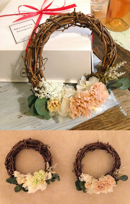 C. mercerie bouquet【アジサイとカーネーションで作るアンティークリース】